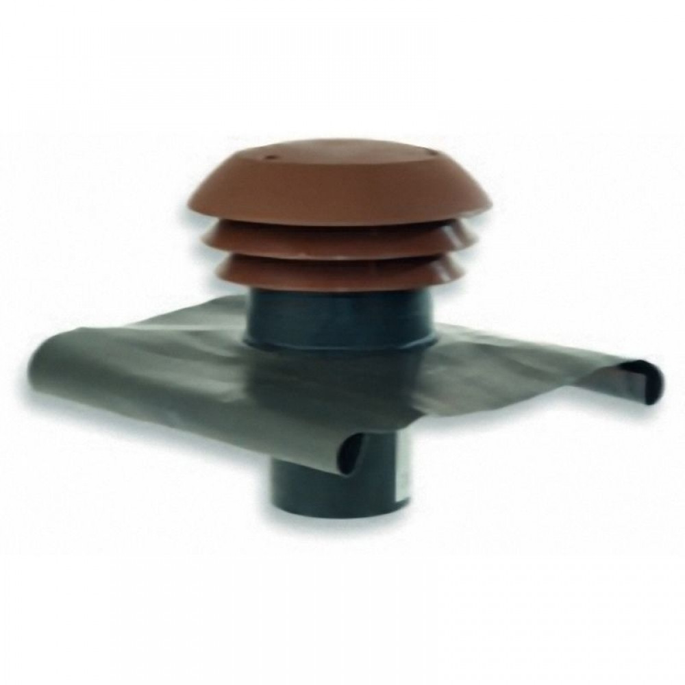 NA 125 mm cserépvörös (RAL 3009) PVC anyagú esővédő sapka. Kültéri tetőátvezetés magastetős épületekhez 30°-55°-os tető-hajlásszögig, kör keresztmetszetű horganyzott acél csatlakozással a légcsatorna rendszerhez. Vízelvezető gallérral és madárhálóval ellátott.