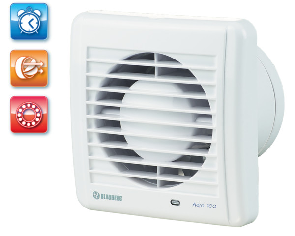 UV-álló ABS műanyagból készült, fürdőszoba, zuhanyzó, konyha és egyéb használati helyiség folyamatos vagy időszakos elszívására. Klasszikus megjelenésű háztartási ventilátor, 125 mm légcsatornához, időrelével. Golyóscsapágyas kivitel.