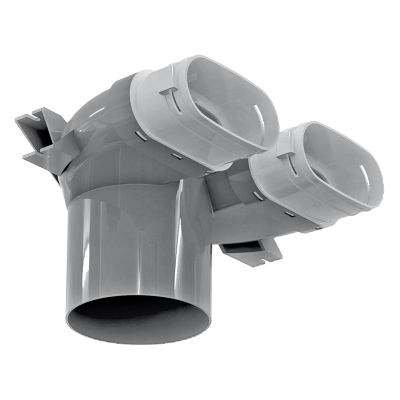 Mennyezeti műanyag szelepfogadó idom, 2x52 mm csatlakozással, 125 mm mennyezeti légszelephez. Blaufast légcsatorna rendszerrel kompatibilis.