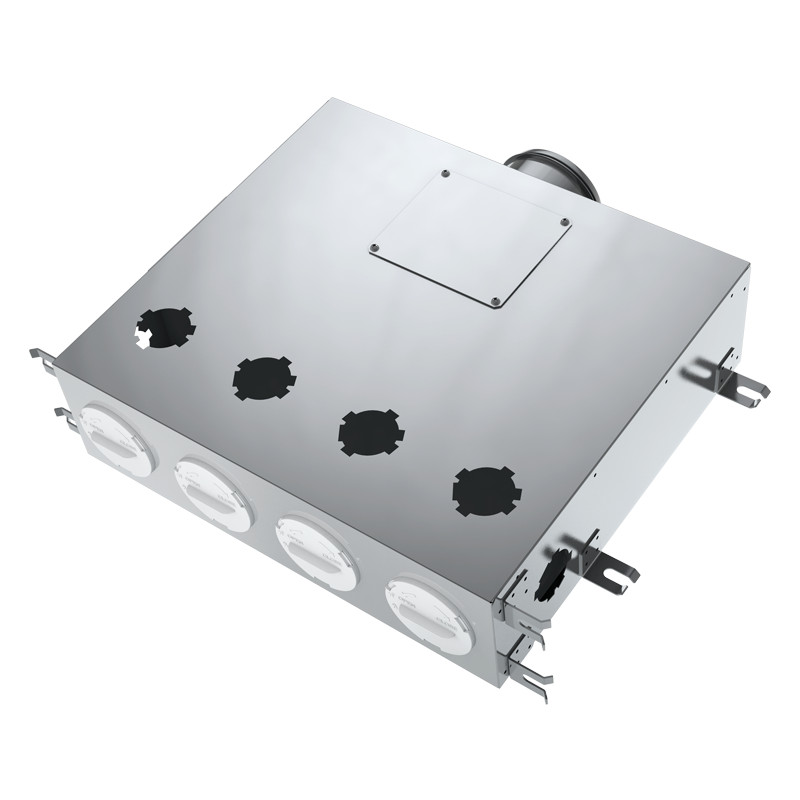 Fém légelosztó doboz hátsó csatlakozással. (125 mm/6x75 mm) Blaufast légcsatorna rendszerrel kompatibilis.