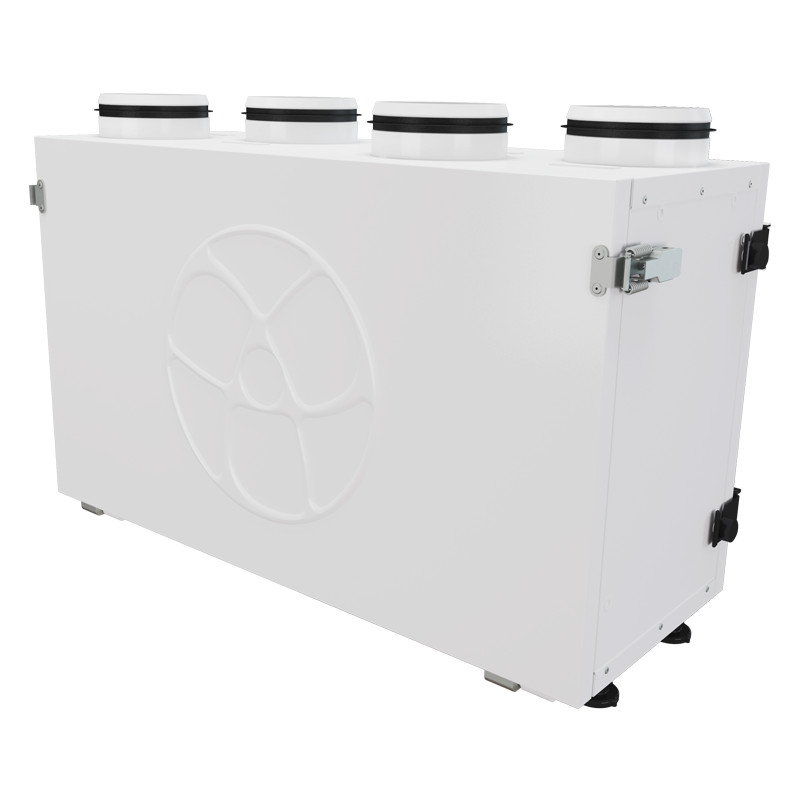 Hővisszanyerős légkezelő berendezés az energiahatékony szellőztetés kialakításához lakásokban, családi házakban, irodákban és egyéb helyiségekben. Hő és akár páravisszanyeréssel csökkenthetjük az energiafelhasználást és növelhetjük a komfortot a belső terekben. Vezérléssel testreszabható és igény szerint szabályozható a szellőzés az épületben. Légkezelő berendezés álló vagy oldalfali beépítés, EC motor, vertikális 125 mm-es csonkokkal, keresztáramú hővisszanyerővel, 250 m3/h 100 Pa teljesítménnyel, S14 vezérléssel.