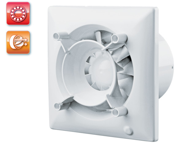 UV-álló ABS műanyagból készült, fürdőszoba, zuhanyzó, konyha és egyéb használati helyiség folyamatos vagy időszakos elszívására. Design Konzept termékcsaládba tartozó háztartási ventilátor, 125 mm légcsatornához. Golyóscsapágyas kivitel. Design Konzept előlapokkal kompatibilis.