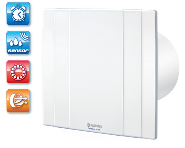 UV-álló ABS műanyagból készült, fürdőszoba, zuhanyzó, konyha és egyéb használati helyiség folyamatos vagy időszakos elszívására. Dekoratív előlapos háztartási ventilátor, 125 mm légcsatornához, időrelével és páraézékelővel. Golyóscsapágyas kivitel.