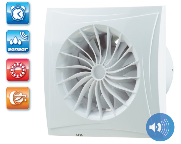 UV-álló ABS műanyagból készült, fürdőszoba, zuhanyzó, konyha és egyéb használati helyiség folyamatos vagy időszakos elszívására. Intelligens és energiahatékony háztartási ventilátor, 150 mm légcsatornához, időrelével és páraézékelővel. Golyóscsapágyas kivitel.