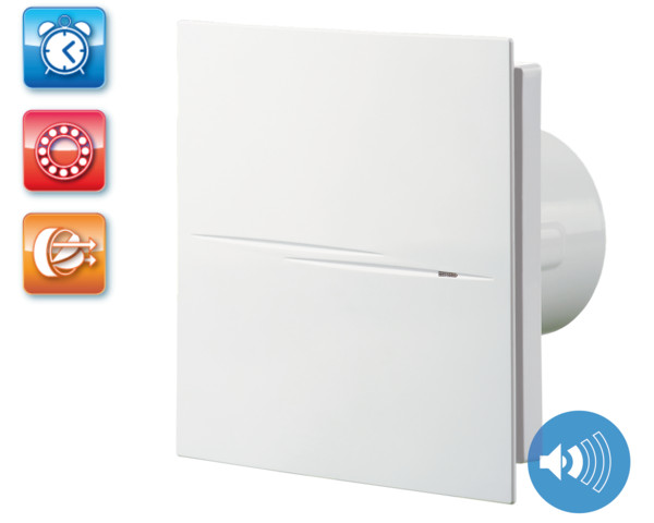 UV-álló ABS műanyagból készült, fürdőszoba, zuhanyzó, konyha és egyéb használati helyiség folyamatos vagy időszakos elszívására. Intelligens és energiahatékony háztartási ventilátor, 100 mm légcsatornához, időrelével. Késleltetett bekapcsolás (60 mp) és késleltetett kikapcsolás (2-30 perc) valamint intervallum kapcsoló (0-24 h). Golyóscsapágyas kivitel.