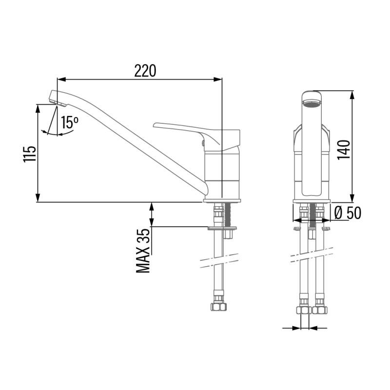 Modern dizájn és funkcionális kialakításEz az egykaros csaptelep elegáns króm felületével és ívelt kifolyójával modern megjelenést kölcsönöz bármely konyhának vagy fürdőszobának. A krómozott kivitel nemcsak látványos, de ellenálló is a mindennapi használat során keletkező vízkővel és ujjlenyomatokkal szemben. A letisztult forma és a fényes felület harmonikusan illeszkedik a kortárs enteriőrök világába.Maximális kényelem és rugalmasságA 360 fokban forgatható csaptelep kiváló megoldás mind a konyhában, mind a fürdőszobában, ahol a használhatóság és a mozgásszabadság kiemelten fontos. Ez a csaptelep lehetővé teszi a kifolyó teljes körű elforgatását, így könnyedén irányíthatja a vízsugarat bármely irányba, megkönnyítve a mosogatást, mosdókagyló tisztítását vagy akár a zöldségek, gyümölcsök öblítését.A forgatható kialakítás növeli a csaptelep funkcionalitását, különösen sarokban vagy dupla mosogatók esetén, ahol a mozgathatóság jelentős előnyt jelent. A legtöbb 360 fokban forgatható csaptelep emellett víztakarékos kialakítású, és könnyen szerelhető, így praktikus és környezetbarát választás.A víztakarékosság jegyébenAz Air Spout funkcióval renedelkező csaptelep ideális választás mindazok számára, akik szeretnének takarékoskodni a vízzel, miközben megőrzik a komfortot és a használati élményt. Emellett hozzájárul a környezetvédelemhez és az energiahatékonysághoz, hiszen kevesebb víz felhasználása kevesebb energiafelhasználást is jelent a melegvíz előállításánál. Válassza az Air Spout funkcióval ellátott csaptelepet, és élvezze a gazdaságos, mégis kényelmes vízhasználat előnyeit minden nap!Egyszerű és hatékony vezérlésA közepen elhelyezett egykaros vezérlés intuitív és ergonomikus használatot biztosít. A kar könnyedén szabályozza a víz hőmérsékletét és erősségét, lehetővé téve a precíz beállítást. A klasszikus egykaros kialakítás ideálisan ötvözi az egyszerűséget és a funkcionalitást.Cold Start – Energiatakarékos és környezetbarát választásA Cold Start funkció innovatív megoldást kínál mindazoknak, akik fontosnak tartják az energiatakarékosságot és a fenntarthatóságot. Egyedülálló kialakításának köszönhetően a csapkar középállásban kizárólag hideg vizet enged, így a melegvíz-rendszer csak akkor kapcsol be, amikor valóban szükség van rá. Ezzel jelentős energiamegtakarítás érhető el, hiszen elkerülhető a felesleges vízmelegítés a mindennapi, gyors használatok során.A Cold Start technológia nemcsak a rezsiköltségek csökkentésében segít, hanem hozzájárul a környezet védelméhez is, hiszen kevesebb energiafelhasználással kisebb ökológiai lábnyomot eredményez. Válassza ezt a modern, tudatos megoldást, ha Önnek is fontos a fenntarthatóság és a költséghatékony működés!Tartós és precíz működésA CATA CBB/D csaptelep megbízhatóságának alapja a kiváló minőségű kerámia betét, amely precíz vízáramlás- és hőmérséklet-szabályozást biztosít. A tartós, kopásálló kerámia korongok hosszú élettartamot garantálnak, miközben megakadályozzák a csöpögést és a vízszivárgást. Ez a fejlett technológia ellenáll a vízkőnek és a korróziónak, így a csaptelep hosszú távon is zavartalanul működik, és energiatakarékos, kényelmes használatot tesz lehetővé a mindennapokban.Stabilitás, amiben megbízhatA csomagban található stabilizáló háromszög elem biztosítja, hogy csaptelepe stabilan és biztonságosan álljon, megakadályozva a billegést és elmozdulást még vékony munkalapok esetén is. Hosszabb élettartam, kényelmes használat – válassza a megbízható alapot a mindennapi vízhasználathoz!M10x1x3/8” méretű, minősített, flexibilis bekötőcsövekA csaptelephez tartozó minősített, flexibilis bekötőcsövek M10x1x3/8”-os csatlakozással rendelkeznek, így egyszerűen és biztonságosan illeszthetők a legtöbb hazai vízhálózathoz. A hajlékony kialakítás megkönnyíti a beszerelést, a tanúsított anyaghasználat pedig garantálja a hosszú élettartamot és a megbízható működést. Válassza a minőséget és a biztonságot otthona számára!
