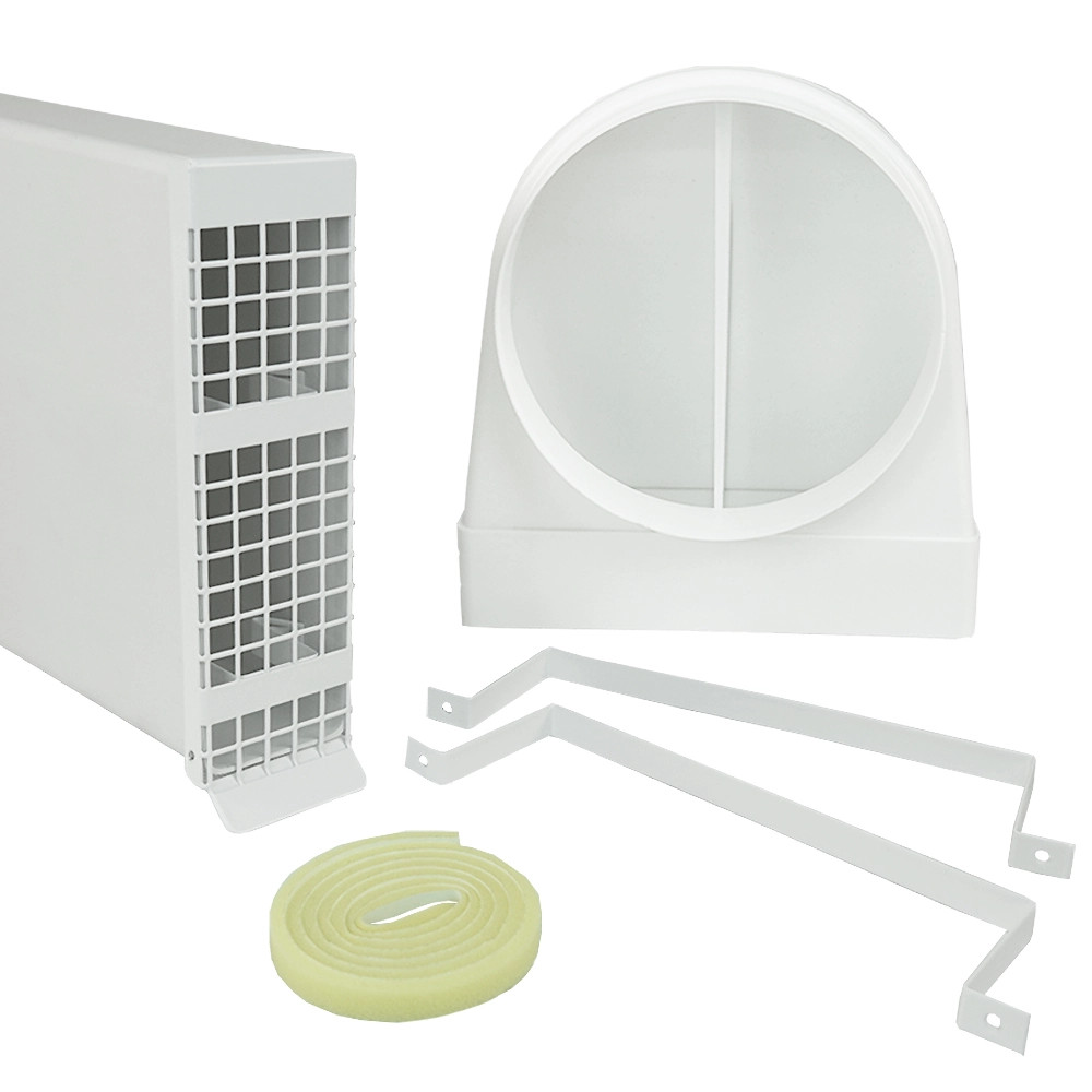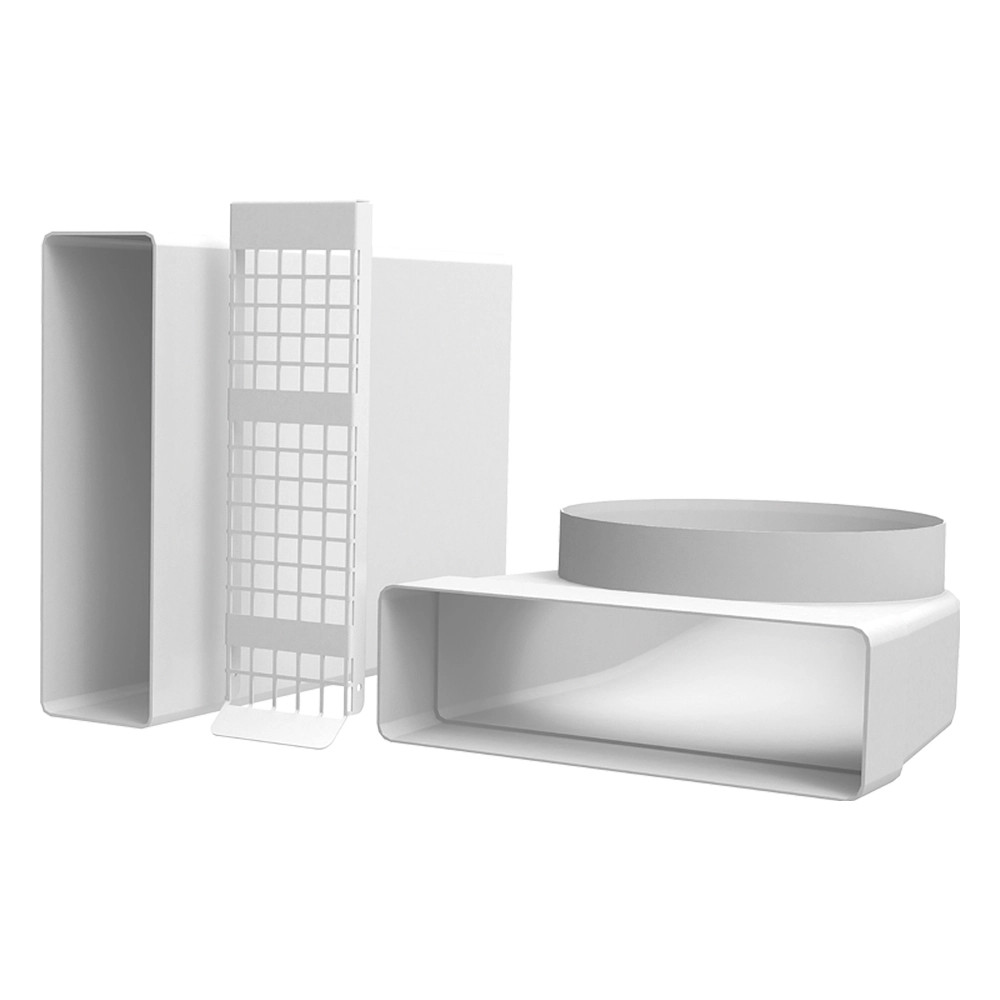 A szögletes telepítési szett a Dalap ZEPHIR SIMPLE és ZEPHIR SIMPLE DOUBLE szobai hővisszanyerő egységekhez, speciális megoldás kínál olyan helyzetekben, amikor a hővisszanyerés kivezetése nem kivitelezhető közvetlenül a homlokzaton keresztül, vagy ha azt szeretnénk, hogy a hővisszanyerés a lehető legkevésbé legyen szem előtt. A kialakítás egy szögletes ASA műanyagbók készült szűkítőt és egy külső rozsdamentes acélból készült csepegtető tálcával ellátott szellőzőrácsot alkalmaz a kondenzvíz elvezetésének megkönnyítésére.