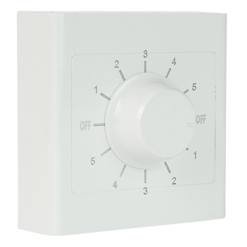 A vezérlést egy forgókapcsoló biztosítja, amely szilárdan illeszkedik az egyes pozíciókba, és lehetővé teszi a folyamatos forgatást körbe-körbe ütközés nélkül. Öt sebességfokozat közül lehet választani, valamint lehetőséget biztosít a készülék teljes kikapcsolására is. A szabályozó képes bekapcsolni és szabályozni a ventilátort a minimális és maximális fordulatszám között (OFF-1-2-3-4-5), valamint a maximális és minimális fordulatszám között (OFF-5-4-3-2-1) egyaránt.