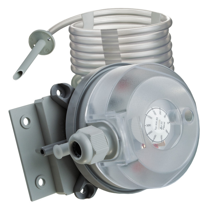 Nyomáskülönbség kapcsoló szenzor, mely a rajta található két bemeneti pont közötti légnyomás különbséget méri 50-500 Pa közötti tartományban. Ez az érték manuálisan, a rendszer igényeihez mérten állítható. Gyakori felhasználása szűrőeltömődés jelzőként, vagy elektromos fűtőkaloriferek esetében a légáram meglétét jelző szenzorként.