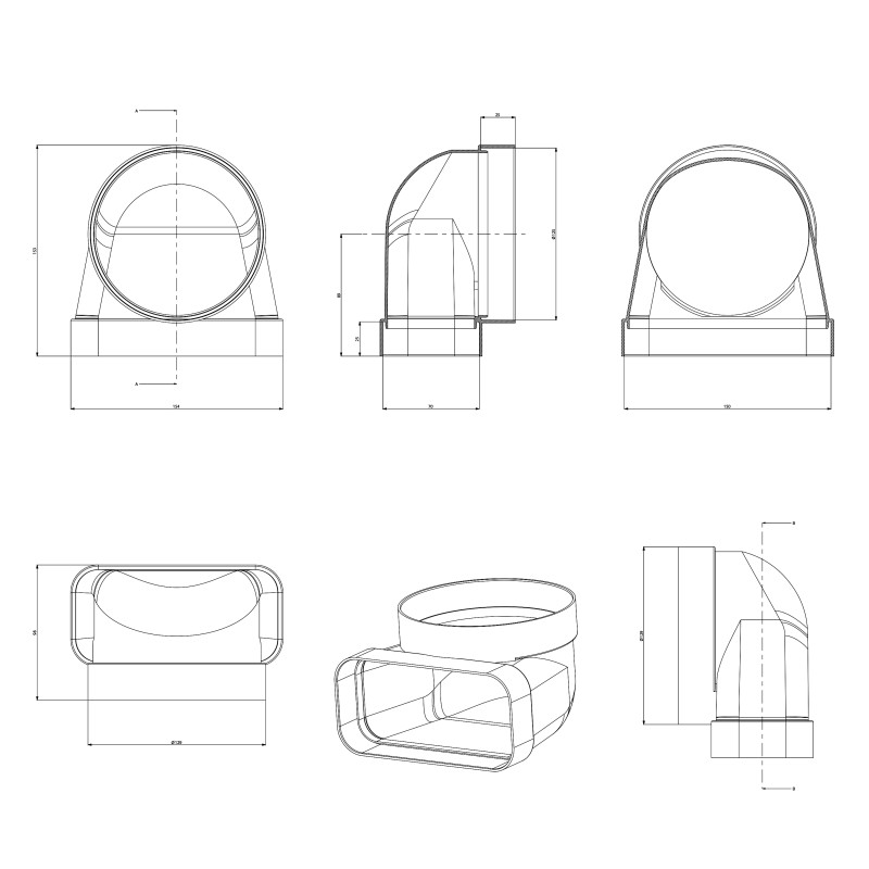 Elica - Cső-lapos csatorna átalakító 90° - ø150 mm (1052Q)