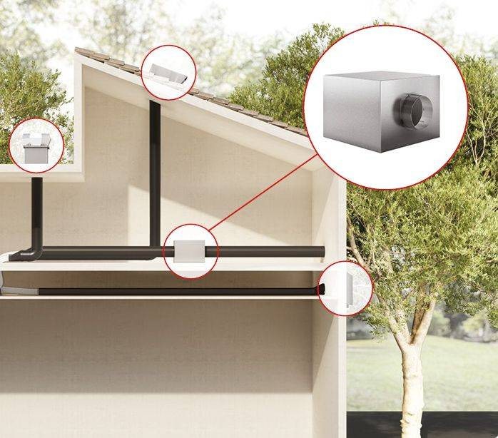 Külső motoros páraelszívó rendszer tervezése és telepítése esetén megfelelő távolságot kell biztosítani a páraelszívó ernyő és az adott külső motor között.