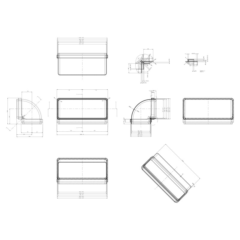 Az Elica 1053S téglalap alakú, lapos csatorna elem könnyű, mégis strapabíró konstrukciója egyszerű telepítést és használatot tesz lehetővé a mellékelt csatlakozók segítségével. A téglalap alakú keresztmetszet lehetővé teszi, hogy a csövezés diszkréten fusson a falak mentén, bútorok vagy polcok felett, miközben teljesen rejtve marad, így tökéletesen alkalmazkodik a különböző konyhai elrendezésekhez. Az Elica által kifejlesztett csövezési rendszerek részeként ez a hajlított sarok elem hatékonyan megoldja a páraelszívók telepítésével járó technikai és esztétikai kihívásokat, különösen a függőleges elvezetés esetén.