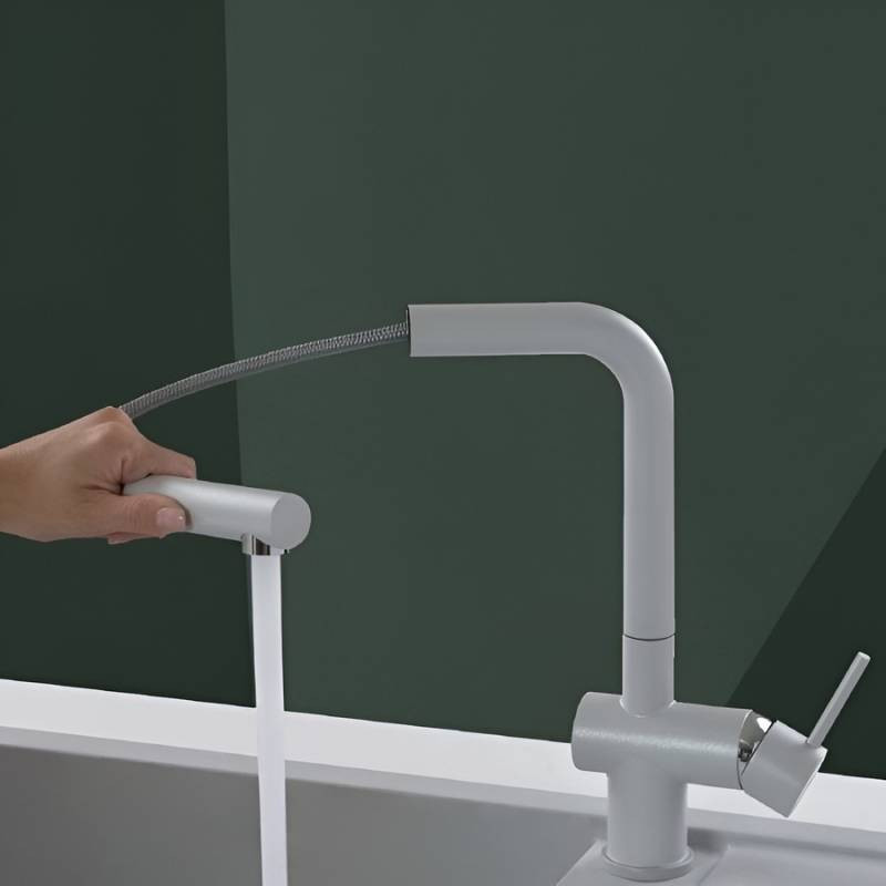 A csaptelep kihúzható zuhanyfeje nagy szabadságot ad a konyhai munkák során. Legyen szó nagy edények megtöltéséről vagy a mosogató alapos tisztításáról, a rugalmas megoldás mindig kéznél van. A 360°-ban forgatható kifolyó és a 0–90°-os karvezérlés egyszerű, precíz és kényelmes használatot biztosít. Ez a praktikus kialakítás ideális választás azoknak, akik a mindennapi feladatoknál a hatékonyságot és a könnyű kezelhetőséget keresik.