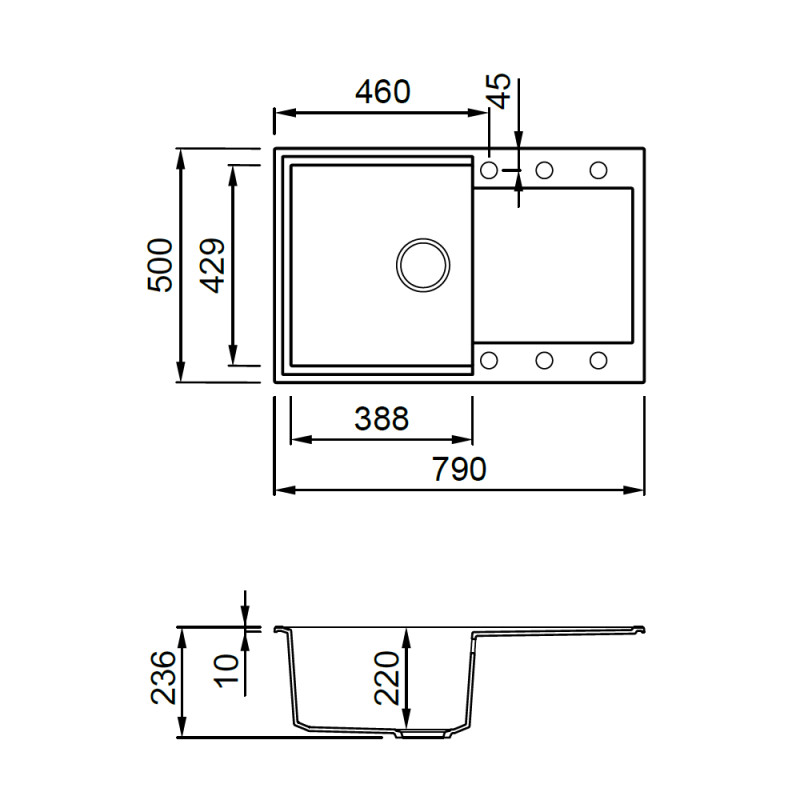A 790x500 mm-es teljes méret és a 220 mm-es medencemélység bőséges helyet kínál a nagyobb edények tisztításához is. A 770x480 mm-es kivágási méret és a 500 mm-es szekrényméret ideális választássá teszi kisebb és közepes méretű konyhák számára. A megfordítható kialakításnak köszönhetően a csepptálca elhelyezése a konyha adottságaihoz igazítható, így mindig a legkényelmesebb munkafolyamatot biztosítja.