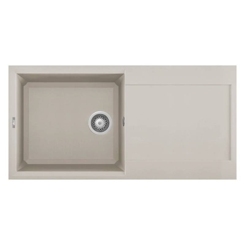 Az ELLECI Easy 480 Granitek egymedencés mosogatótálca csepptálcával – G39 Bianco Soft színben – a konyha központi elemeként a praktikumot és az esztétikumot ötvözi. A csaptelep oldalra helyezett kialakítása lehetővé teszi, hogy a tartozékok a mosogató teljes hosszában szabadon mozogjanak, így egy harmonikus, jól szervezett munkaterület alakul ki, ahol minden mozdulat gördülékeny.