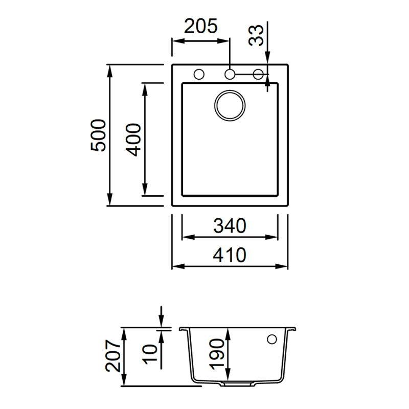 A mindössze 410×500 mm-es külső méret ideálissá teszi kisebb konyhákba, minikonyhákba, garzonokba vagy akár nyaralókba is. A 190 mm mély egyedi medence meglepően tágas, és jól használható a mindennapos mosogatáshoz. A tálca beépítéséhez mindössze 450 mm széles alsószekrényre van szükség.