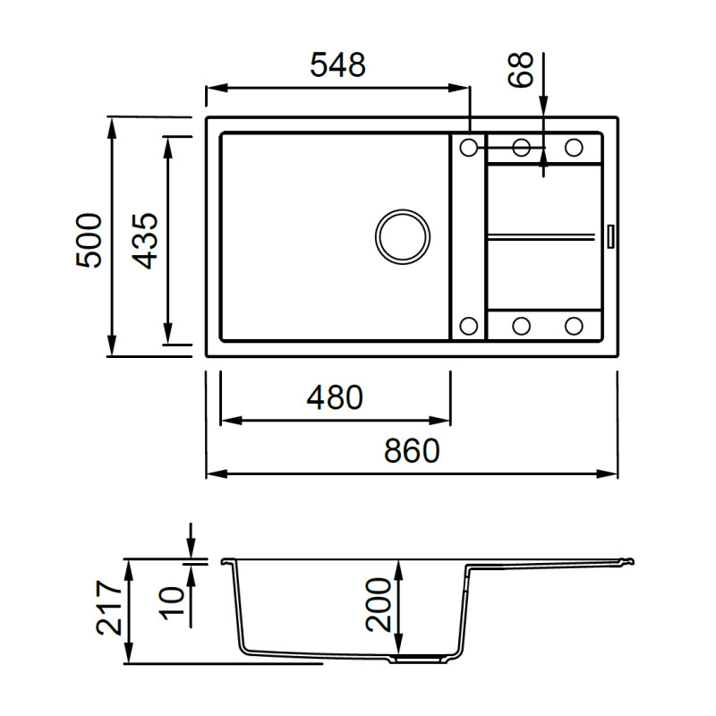 A 860x500 mm-es méret és a 200 mm-es medencemélység bőséges teret biztosít nagyobb edények és tepsik tisztításához is. A csepptálca kiegészíti a fő medencét, lehetővé téve a frissen mosott edények gyors szárítását vagy a zöldségek és gyümölcsök előkészítését. A 840x480 mm-es kivágási méret és a 600 mm-es szekrényméret biztosítja, hogy a beépítés zökkenőmentes legyen, akár új konyhabútorba, akár felújítás során. A megfordítható kialakításnak köszönhetően a csepptálca elhelyezése a konyha adottságaihoz igazítható, így mindig a legkényelmesebb munkafolyamatot biztosítja.