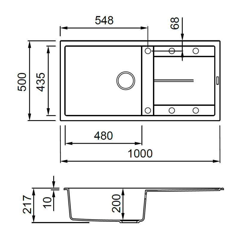 A 1000x500 mm-es méret és a 200 mm-es medencemélység bőséges teret biztosít nagyobb edények és tepsik tisztításához is. A csepptálca kiegészíti a fő medencét, lehetővé téve a frissen mosott edények gyors szárítását vagy a zöldségek és gyümölcsök előkészítését. A 980x480 mm-es kivágási méret és a 600 mm-es szekrényméret biztosítja, hogy a beépítés zökkenőmentes legyen, akár új konyhabútorba, akár felújítás során. A megfordítható kialakításnak köszönhetően a csepptálca elhelyezése a konyha adottságaihoz igazítható, így mindig a legkényelmesebb munkafolyamatot biztosítja.