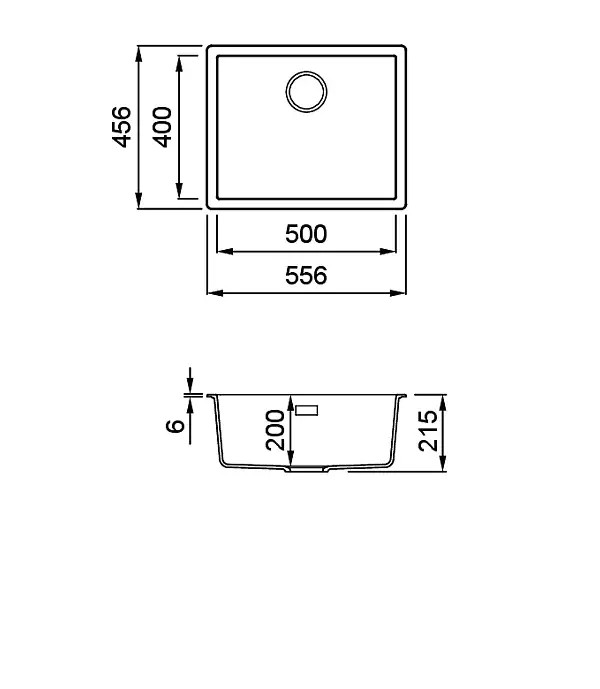 A tálca egyetlen, tágas medencéje 556x456 mm-es külső méretével és 200 mm-es mélységével lehetővé teszi a nagyobb edények kényelmes tisztítását is. A négyszögletes túlfolyó elegáns megoldás, amely amellett, hogy esztétikus, hatékony védelmet nyújt a víz túlcsordulása ellen.