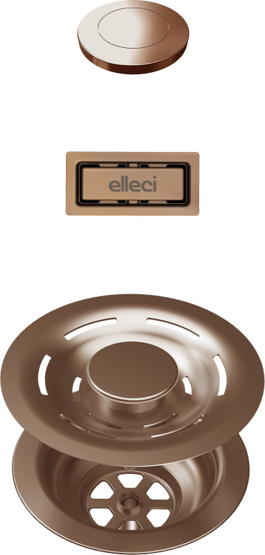 ELLECI FLOW PRO (PUSH-CONTROL OPEN UP) nyomógombos automata dugókiemelő egymedencés mosogatókhoz bronz színben.