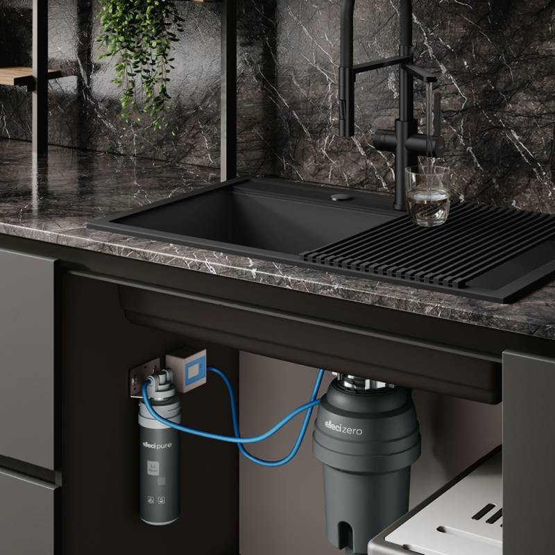 Ez a mosogatótálca aatti szekrénybe szerelhető vízszűrő okos és kényelmes megoldás, amellyel időt, pénzt és stresszt takaríthat meg. Ráadásul nap mint nap értékes hozzájárulást jelent a műanyaghulladék-mentes világ megteremtéséhez.Az Elleci Pure mikro szűrőrendszer kiváló teljesítményt nyújt a különböző szűrési eljárások együttes működésének köszönhetően.TÖBBLÉPCSŐS SZŰRÉS1. Mikroszűrés: 0,5 mikron: Megszűri a mikrorészecskéket, rozsdát, penészt és algákat.2. Aktív szén: Eltávolítja a klórt, fémeket és a mérgező maradványokat.3. Ezüst sók: Bakteriosztatikus hatás. Antibakteriális hatás. MIKROSZŰRÉSA mikroszűrés olyan szűrési eljárás, amely minden, a folyadékokban rendszerint megtalálható, 0,5 mikronnál (innen ered a „mikroszűrés” név) nagyobb átmérőjű részecskét eltávolít.A mikroszűrés 0,5 mikron pórusátmérőjű szűrőkön keresztül történik, amely a vízben található minden szilárd részecskét és lebegő maradványt megakadályoz az áthaladásban (homokot, törmeléket, rozsdát, algát és különféle üledékeket), de nem szűri ki a szervezet számára létfontosságú ásványi anyagokat: a magnéziumot, a kalciumot, a nátriumot és a káliumot. Az ivóvíz-mikroszűrés képes arra, hogy csak a potenciálisan káros elemeket távolítsa el, de a víz kémiai összetételét érintetlenül hagyjaAzzal, hogy csökkentik a lebegő mikrorészecskék és a klór mennyiségét a vízben, jelentősen javítják a kezelt víz minőségét, ami íz és szag szempontjából nagy előnyökkel jár. Képesek kezelni az alacsony nyomáseséseket, a magas áramlási mértékeket és hosszú élettartamot biztosítanak. Az AH-elvnek, azaz a széntömb ezüst sóval való átitatásának, jelentős bakteriosztatikus hatása van, ami megakadályozza a baktériumok terjedését a szűrőben.Élettartam15 000 liter/év — ideális egyetlen család éves fogyasztásához.A csomag tartalma:Szűrőfej, szelep, digitális vízmérő