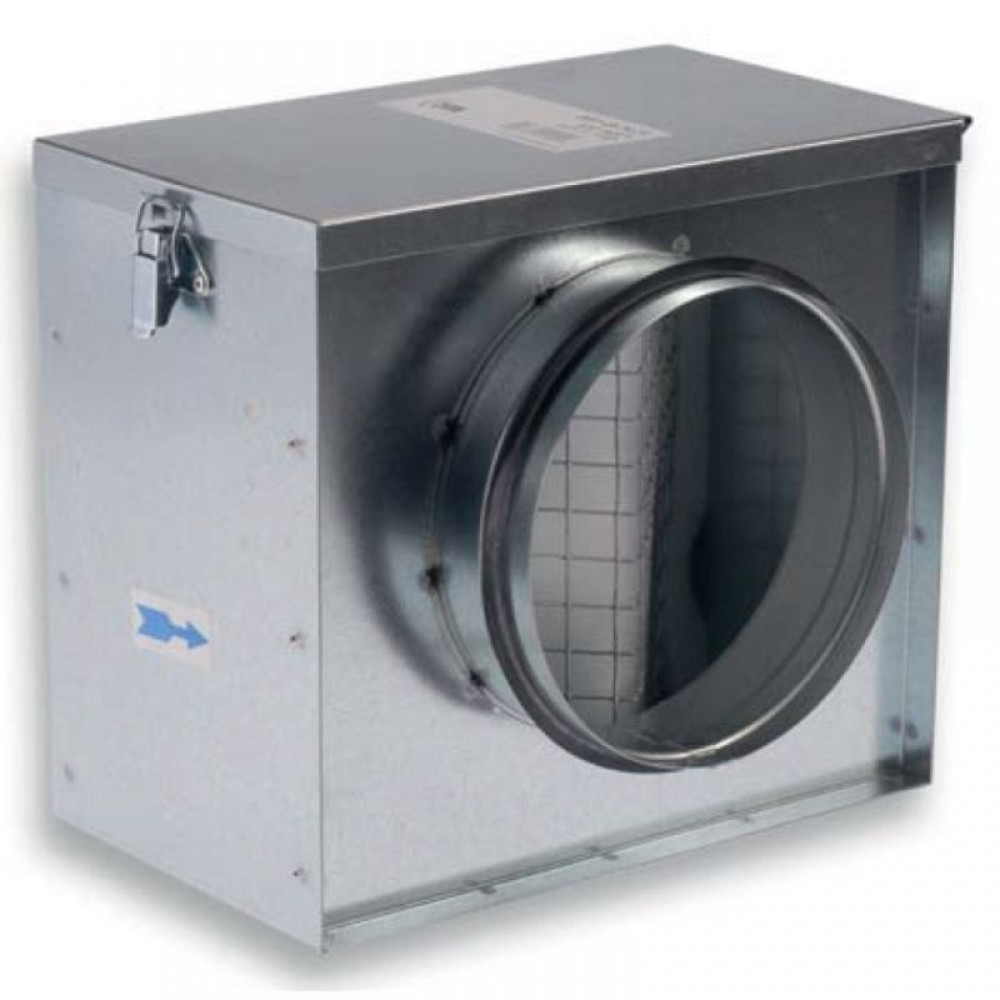 Kör csatlakozású szűrőház G4-es szűrővel, szellőző- és légkondicionáló rendszerek szűréséhez. Anyaga: horganyzott acél ház, könnyen (felülről) hozzáférhető, eldobható lapszűrővel és horganyzott acél hálóval (a szűrő alaptartozék).