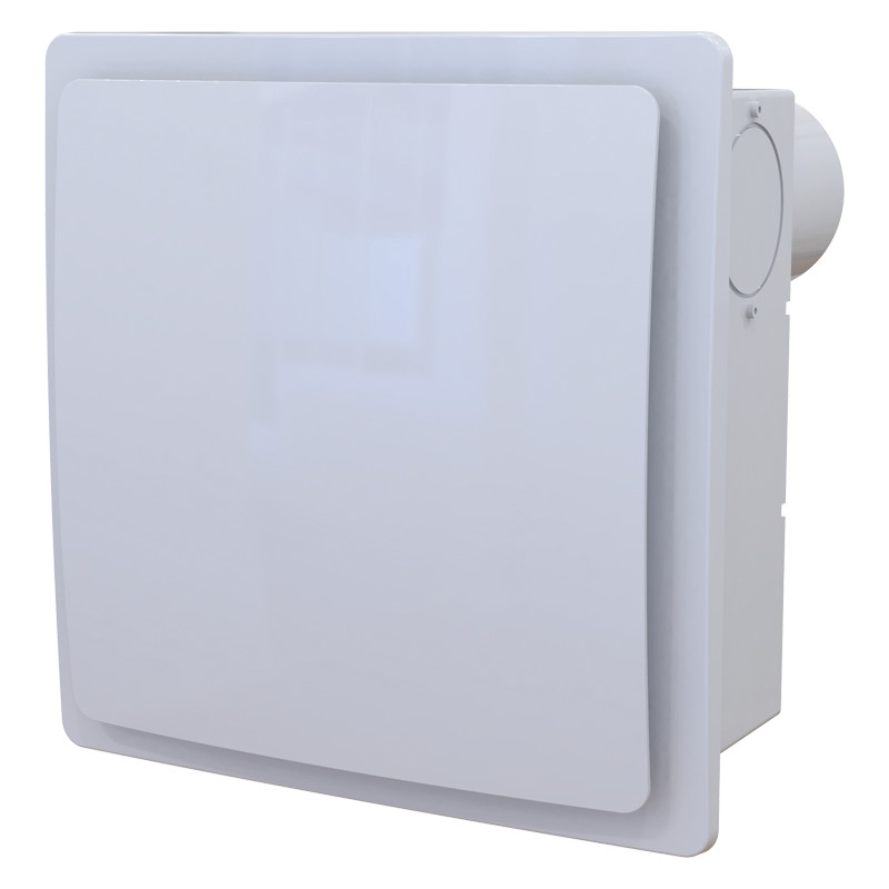 VALEO egycsöves ventilátorok ABS műanyagból készült háza falba való beépítéshez. 80 mm átmérőjű hátsó csőcsonkkal és műanyag visszacsapószeleppel.
