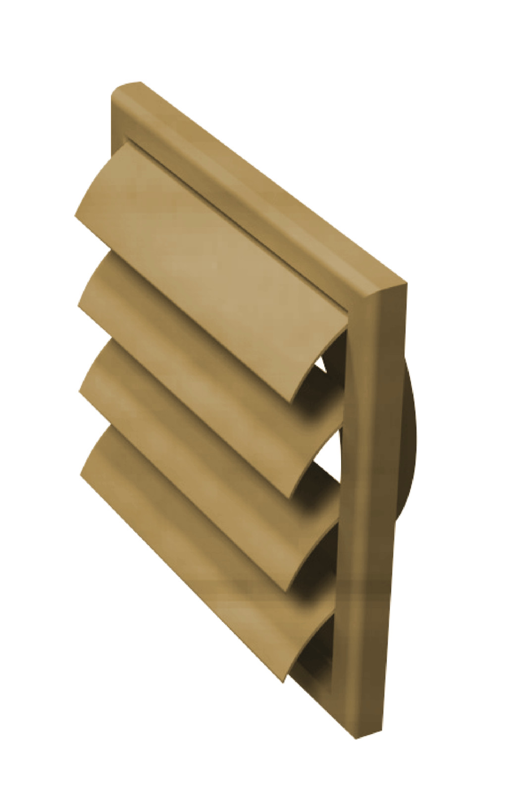 Műanyag takaróelem lakossági, közületi vagy ipari szellőzőrendszerek be- és elszívónyílásainak lezárására. Világos faerezet minta, négyszögletes kialakítás. Gravitációs zsaluval. 125 mm átmérő csőcsatlakozás. 187x187 mm.