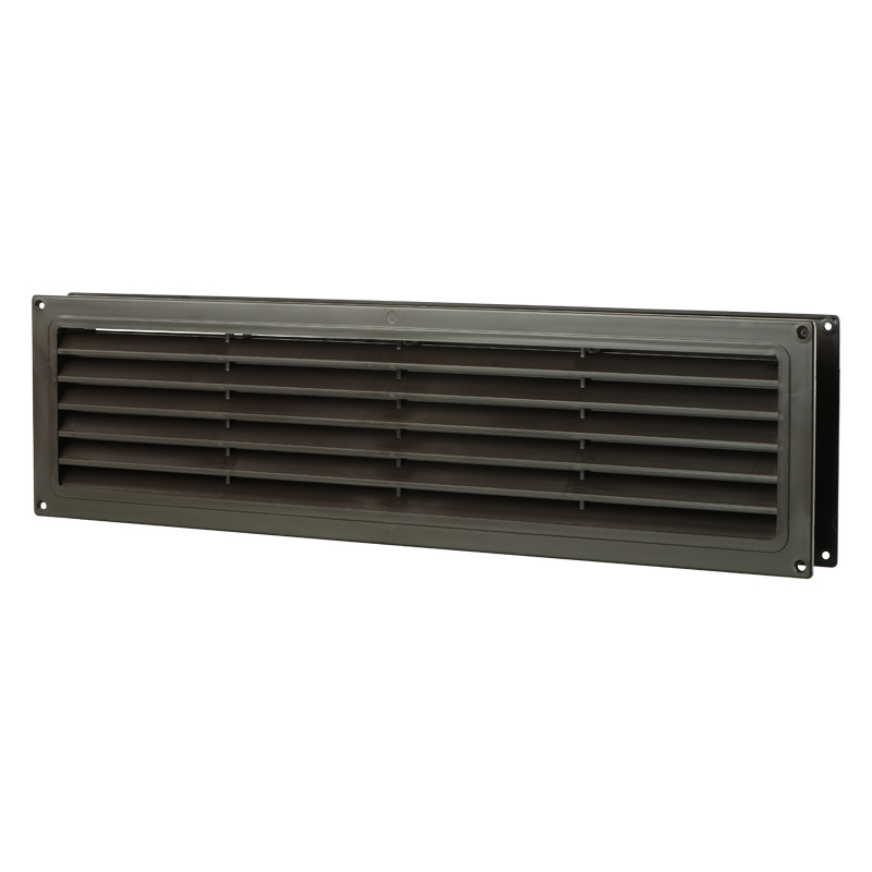 Műanyag takaróelem lakossági, közületi vagy ipari szellőzőrendszerek be- és elszívónyílásainak lezárására. Barna szín, négyszögletes kialakítás. Csőcsatlakozás nélkül. 462x124 mm.
