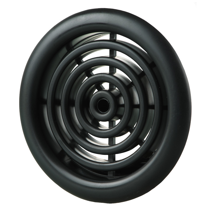 Műanyag takaróelem lakossági, közületi vagy ipari szellőzőrendszerek be- és elszívónyílásainak lezárására. Fekete szín, kerek kialakítás. Szúnyoghálóval.Körkörös rácsozás. 50 mm átmérő csőcsatlakozás. Párban csomagolva.