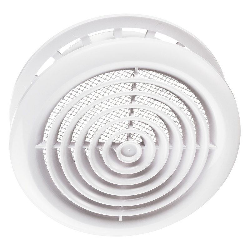 Műanyag takaróelem lakossági, közületi vagy ipari szellőzőrendszerek be- és elszívónyílásainak lezárására. Mennyezeti diffúzor, fehér szín, kerek kialakítás. Szúnyoghálóval. Külső átmérő 123 mm, 80 mm csőcsatlakozással.