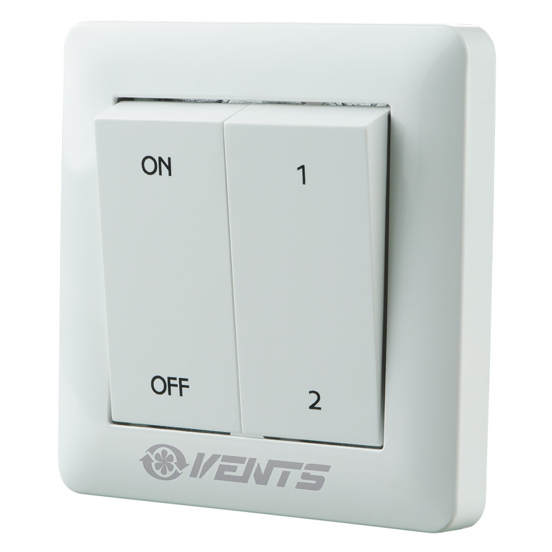 Többsebességes ventilátorokhoz használható fali billenőkapcsoló, ki/be kapcsolás és sebességváltás funkciókkal.