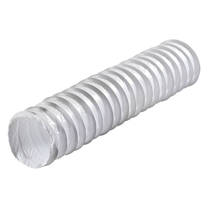 Flexibilis PVC műanyag légcsatorna, magas széntartalmú spirális acélhuzalvázzal. Égésgátló anyagból. Ideális lakó- és irodahelyek szellőzőrendszereihez.
