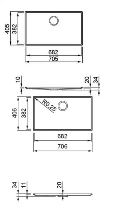 A keratek anyagból készült medencefenék tökéletesen kiegészíti az egyéb prémium anyagból (márványlapokból, porcelánból vagy kőből) készült munkalapokat. A munkalap természetes kő vagy műkő is lehet. Ebben az esetben a szerelés ragasztással történik. 12 mm-es porcelán munkalap esetén csak ragasztással lehet beépíteni.