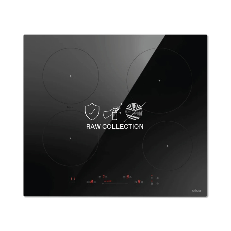 RAW kollekció - Funkcionális és esztétikusMatt fekete üvegfelülettel. Az Elica RAW kollekciója ujjlenyomatmentes és a karcolásoknak jobban ellenálló üvegfelülettel rendelkeznek, ezért tisztításuk is egyszerűbb és gyorsabb. Intuitív és környezetbarát, 60 cm-es méretben.A főzlőap modern technológiája lehetővé teszi, hogy szabályozzuk a berendezés teljesítményét, így energiát takaríthatunk meg, különösen vízforraláskor (akár 25%-kal kevesebb energiát használva a hagyományos indukciós főzőlapokhoz képest). A melegítő funkció tökéletes tej és leves felmelegítésére vagy ízletes krémek és szószok készítésére; az intuitív és könnyen használható csúszka azonnali vezérlést biztosít a sebesség és a booster (külön gombbal) felett; az időzítővel pedig beállíthatjuk, hogy mikor kapcsoljon ki a főzőlap automatikusan. Teljesítmény: 1 db Ø 210 mm-es zóna: 1,5 kW (Booster 2,1 kW) 2 db Ø 180 mm-es zóna: 1,5 kW (Booster 2 kW) 1 db Ø 160 mm-es zóna: 1,2 kW (Booster 1,6 kW)Stop and GoMinden megáll, minden újraindul. Mindezt, csak egy ujjmozdulattal.El kell hagynia a konyhát főzés közben? Semmi gond! Bármikor egyetlen mozdulattal minden aktivált funkciót készenléti állapotba helyezhet. Csak egy gombot kell megnyomnia, hogy újra elindítsa azokat a korábbi beállításokkal.Bridge ZoneXXL méretű edények: nekik is van hely.Hosszúkás vagy óriás edények? Ez a funkció két főzőzónát von össze egyetlen nagyobbá. Garantálja az azonos teljesítményszintet és az állandó hőmérsékletet az egyenletes főzés érdekében.Timer - IdőzítőMindent magától kikapcsol. Önnek csupán a perceket kell beállítania, és a visszaszámlálás megkezdődik. A végén a főzőlap automatikusan kikapcsolja a főzőzónát, erről hangjelzést is adva. Csak nyomja meg az „érintésvezérlőt", és a független időzítők egyszerre aktiválódnak több zónában is egyszerre.Child Lock - GyerekzárA gyermekek mindig biztonságban és védve vannak. Ne aggódjon! Ez a funkció megakadályozza a főzőzónák vagy elszívó területek véletlenszerű bekapcsolását.Warming mode - Lassú főzés, csodálatos ízekA lassabb főzési előkészületekhez tervezve, ideális tej vagy levesek melegítéséhez, krémek vagy szószok készítéséhez, megakadályozva azok túlmelegedését, és melegen tartva az elkészített ételeket.Green Induction - Energiatakarékos főzési technológiaAz energiagazdálkodás mostantól intelligens, így kiváló eredményeket érhet el akár közepes teljesítmény szinteken is (különösen, ha állandó főzést szeretne fenntartani). Ennek a funkciónak köszönhetően a forráspont elérése csak néhány percet vesz igénybe, és körülbelül 25%-os energiamegtakarítást biztosít a hagyományos indukciós főzőlapokhoz képest.