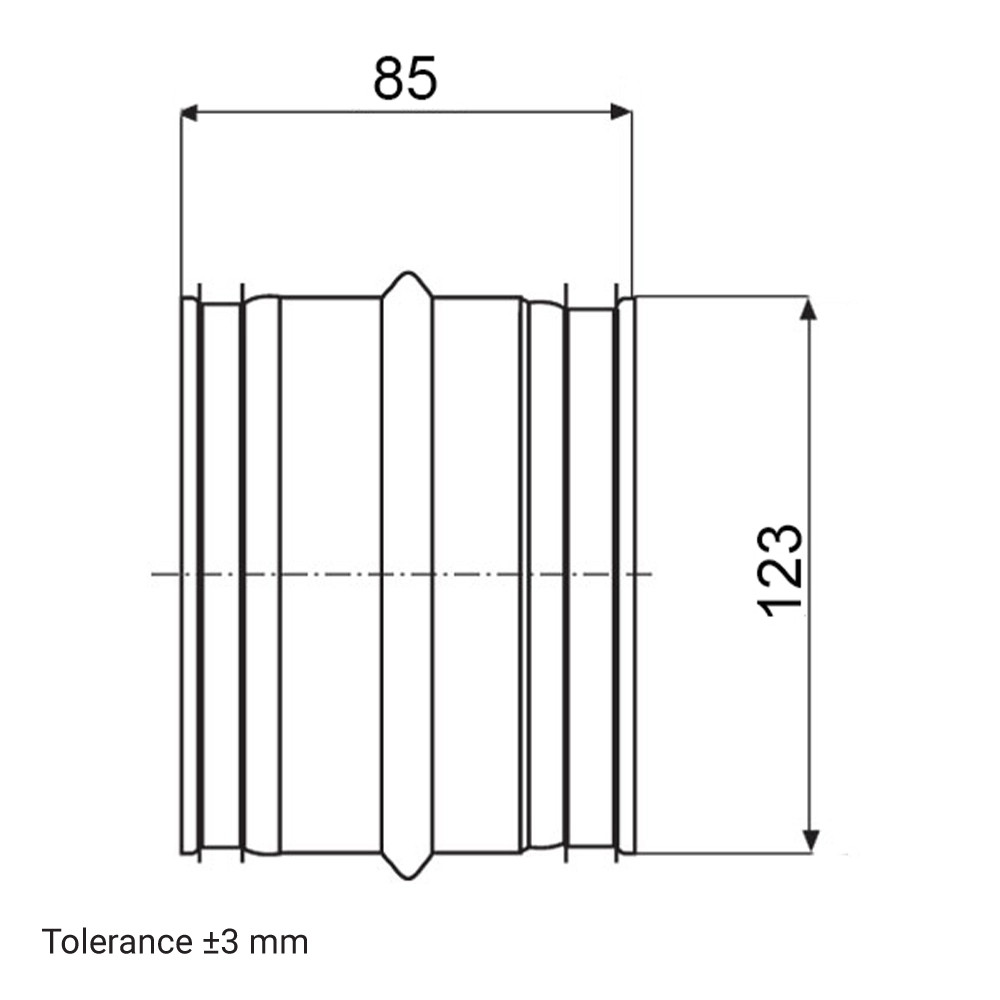 A 125 mm átmérőjű, tömítőgumival ellátott rozsdamentes acél Dalap PMI-O toldó idom teljesen kompatibilis az azonos átmérőjű Dalap SPIROVENTáltalános spiro csővezetékkel, és a rozsdamentes acélDalap SPIROVENTI csővezetékkel.