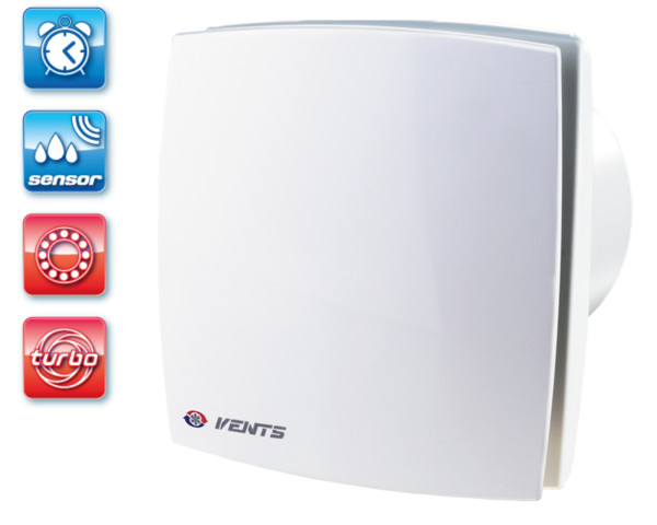 UV-álló ABS műanyagból készült, fürdőszoba, zuhanyzó, konyha és egyéb használati helyiség folyamatos vagy időszakos elszívására. Dekoratív előlapos háztartási ventilátor, 100 mm légcsatornához, időrelével és páraézékelővel. Emelt légszállítás, gólyóscsapágyas kivitel.