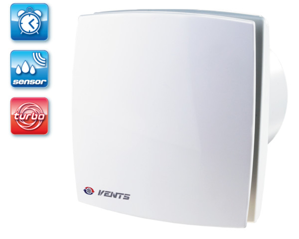 UV-álló ABS műanyagból készült, fürdőszoba, zuhanyzó, konyha és egyéb használati helyiség folyamatos vagy időszakos elszívására. Dekoratív előlapos háztartási ventilátor, 100 mm légcsatornához, időrelével és páraézékelővel. Emelt légszállítás.