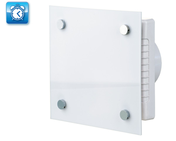 UV-álló ABS műanyagból készült, fürdőszoba, zuhanyzó, konyha és egyéb használati helyiség folyamatos vagy időszakos elszívására. Automata zsalus háztartási ventilátor, 100 mm légcsatornához, időrelével és páraézékelővel, dekoratív előlappal.