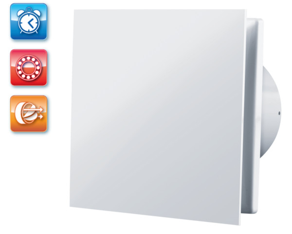 UV-álló ABS műanyagból készült, fürdőszoba, zuhanyzó, konyha és egyéb használati helyiség folyamatos vagy időszakos elszívására. Intelligens és energiahatékony háztartási ventilátor, 100 mm légcsatornához, időrelével. Golyóscsapágyas kivitel.