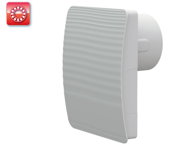 UV-álló ABS műanyagból készült, fürdőszoba, zuhanyzó, konyha és egyéb használati helyiség folyamatos vagy időszakos elszívására. Automata zsalus háztartási ventilátor, 100 mm légcsatornához.