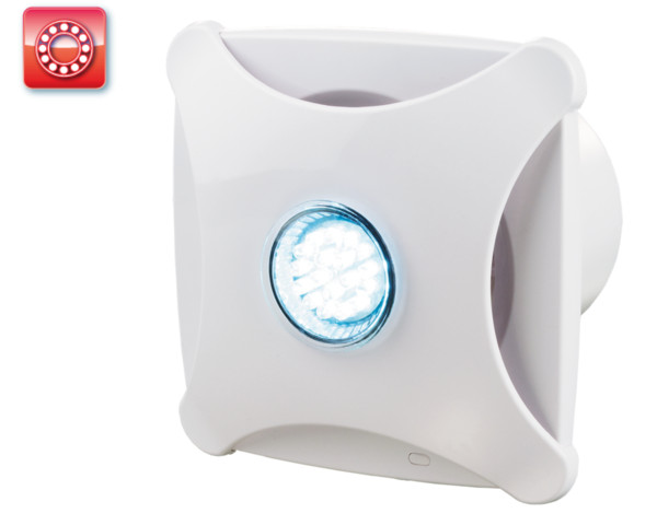 UV-álló ABS műanyagból készült, fürdőszoba, zuhanyzó, konyha és egyéb használati helyiség folyamatos vagy időszakos elszívására. Dekoratív előlapos háztartási ventilátor, 100 mm légcsatornához. Golyóscsapágyas kivitel.