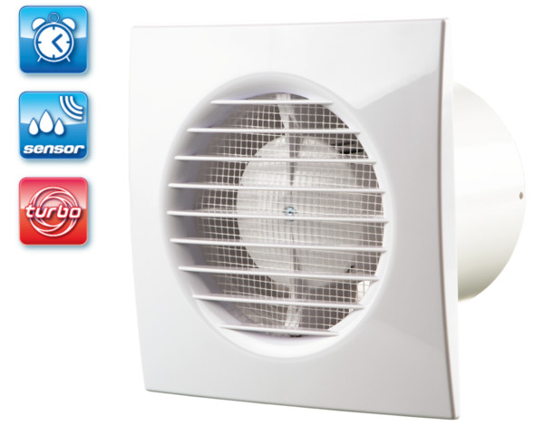 UV-álló ABS műanyagból készült, fürdőszoba, zuhanyzó, konyha és egyéb használati helyiség folyamatos vagy időszakos elszívására. Klasszikus megjelenésű háztartási ventilátor, 125 mm légcsatornához. Emelt légszállítású motorral szerelt kivitel.