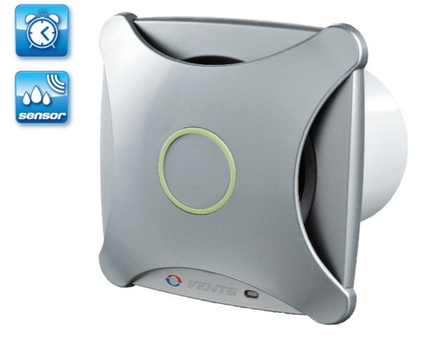 UV-álló ABS műanyagból készült, fürdőszoba, zuhanyzó, konyha és egyéb használati helyiség folyamatos vagy időszakos elszívására. Dekoratív előlapos háztartási ventilátor, 125 mm légcsatornához, időrelével és páraézékelővel.