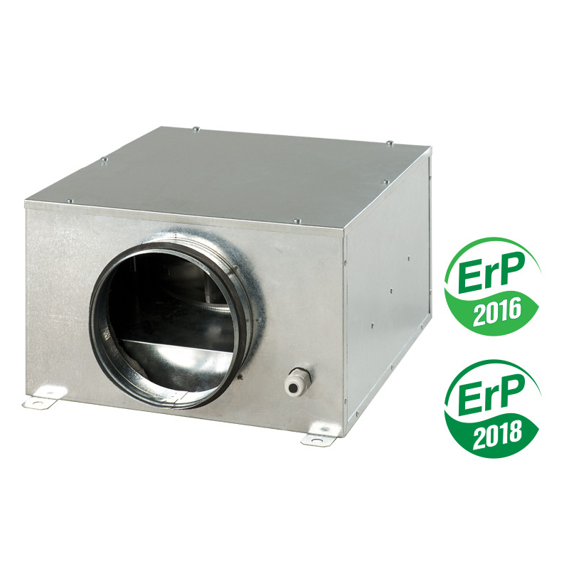 "Hő- és hangszigetelt anyaggal bélelt, horganyzott acéllemez burkolatú csőventilátor. A csatlakozó csonkok gumitömítéssel szereltek. Hő és hangszigetelt házas csőventilátor, (max. 55 C°) 150 mm légcsatornához, 730 m3/h, 230 V, 50 Hz, IP X4"