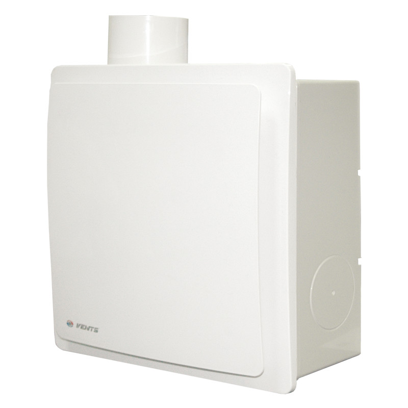 Egycsöves szellőzőrendszerrel ellátott helyiségekben alkalmazható főleg konyhai, fürdőszobai, WC, raktári és más háztartásbeli beszereléssel. Kizárólag fali telepítés. Az előlap és a burkolat kiváló minőségű ABS műanyagból készült, műanyag visszacsapó szeleppel szerelve. 80mm-es csatlakozócsonk. Falba süllyeszthető kivitel. 35, 63 és 102 m3/h háromfokozatú motorral. A Szett tartozéka a Beépítő keret és ház.